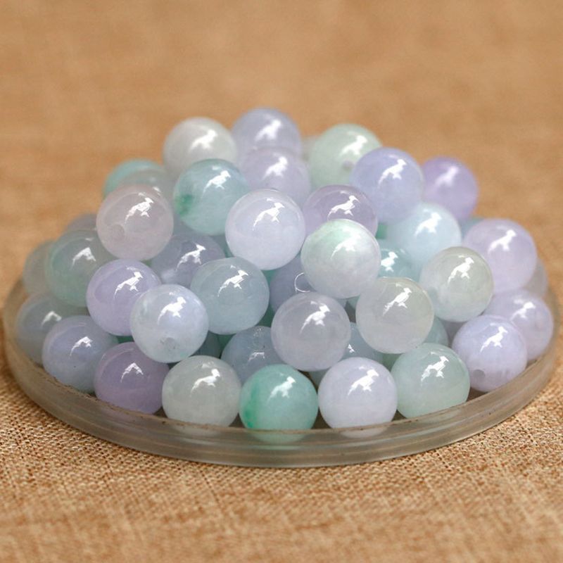 天然翡翠散珠氷種浅緑巴山玉珠半製品男女金ブレスレットネックレス部品