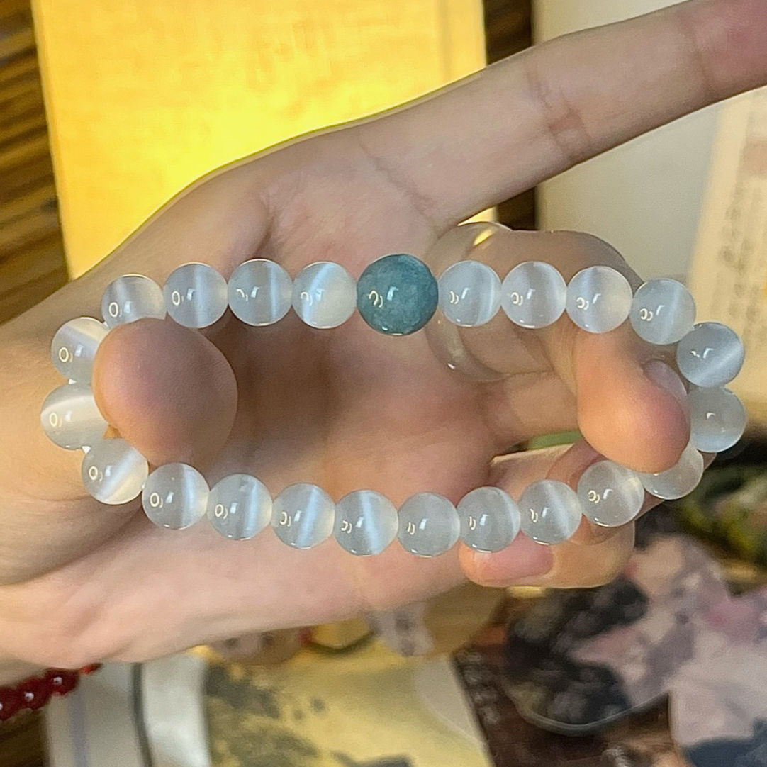 中国風オリジナルキャッツアイブレスレットブルーカルセドニーコールドブレスレットシンプルクールスタイル新中国風国民風ニッチ