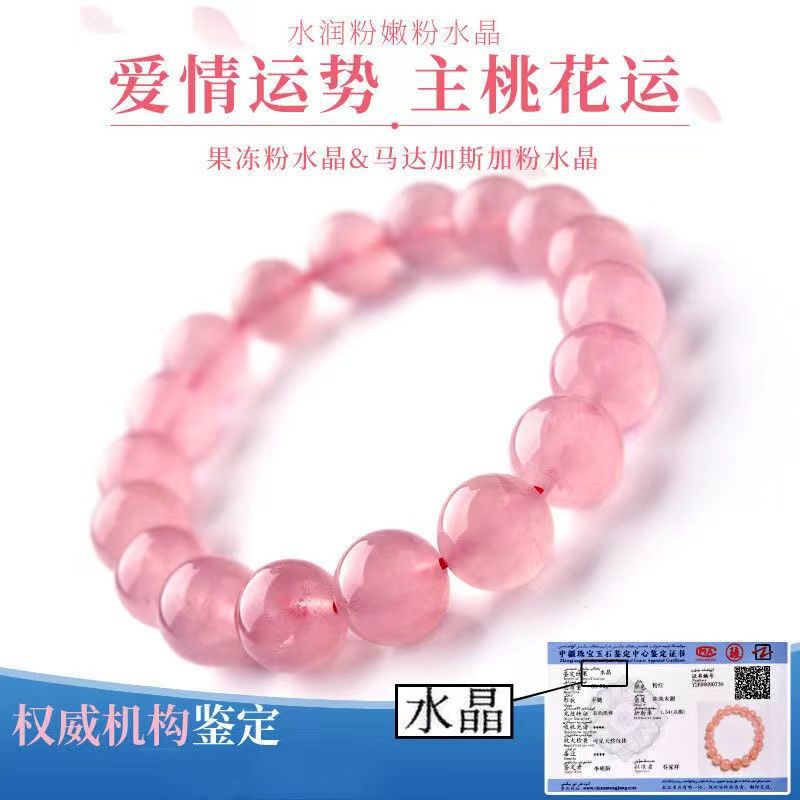 本物(証明書付き) ピンククリスタルブレスレット レディース 天然ピンククリスタル ピンクハイビスカスストーン ストロベリークリスタル シングルサークルブレスレット
