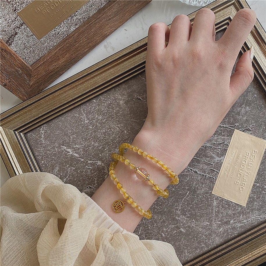交換後、ブラジルの金髪晶チタン晶三輪ブレスレットの女性招財多輪黄水晶本命幸運誕生日プレゼント