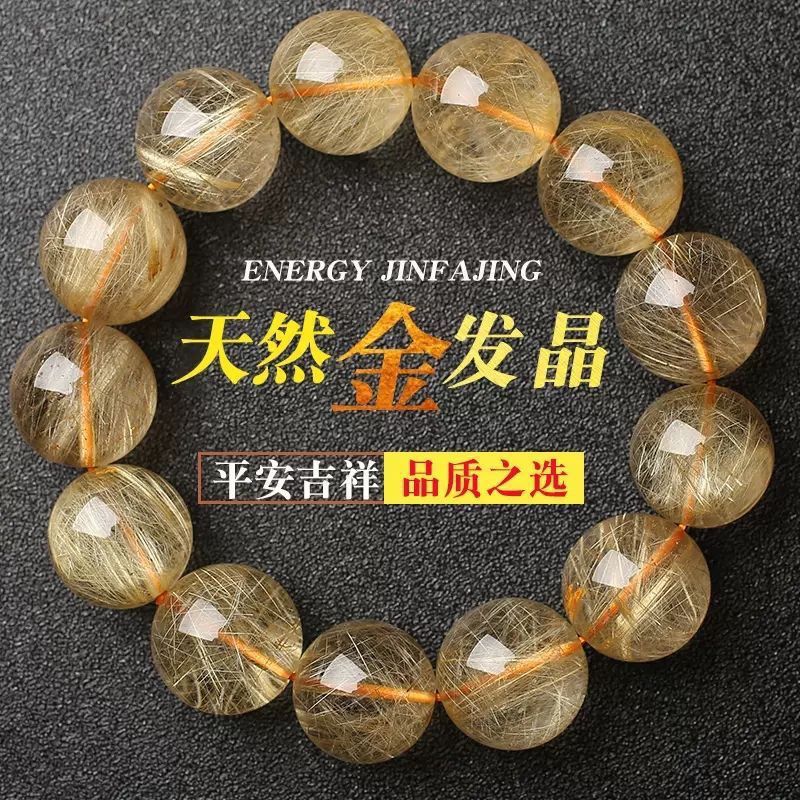 天然ブラジル産ブロンドクリスタルチタンクリスタルオールドマインカップルイエローヘアクリスタルブロンドクリスタルブレスレット富を引き寄せる本物のクリスタル富を引き寄せる