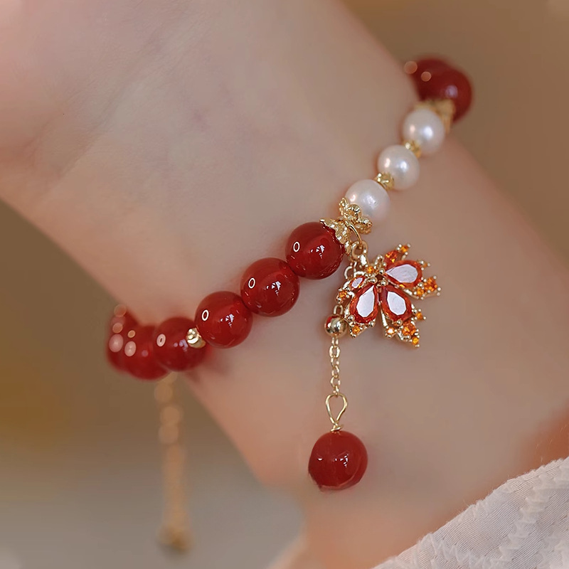 メープルの夜〜天然赤瑪瑙メープルリーフブレスレットハイエンドラッキーブレスレット親友ガールフレンド誕生日恋人 38 ギフト