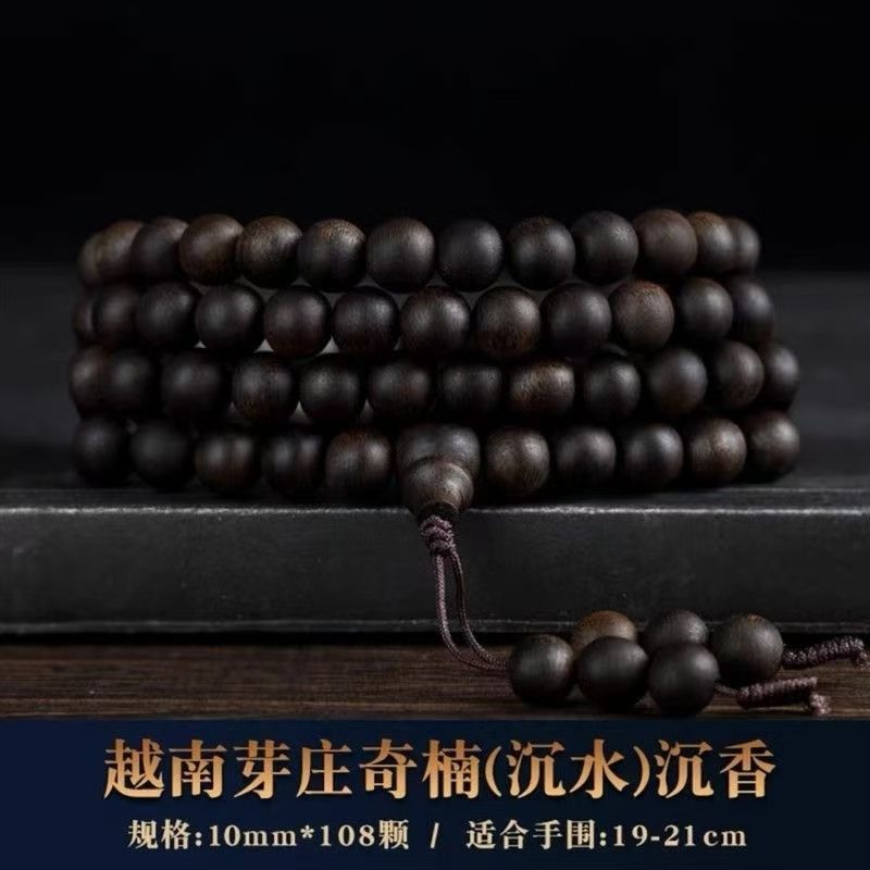 本物の天然ナチュラルヤンカウベトナムチナン沈香ブレスレット水中グレード108オールドマテリアル仏ビーズブレスレット男性と女性用
