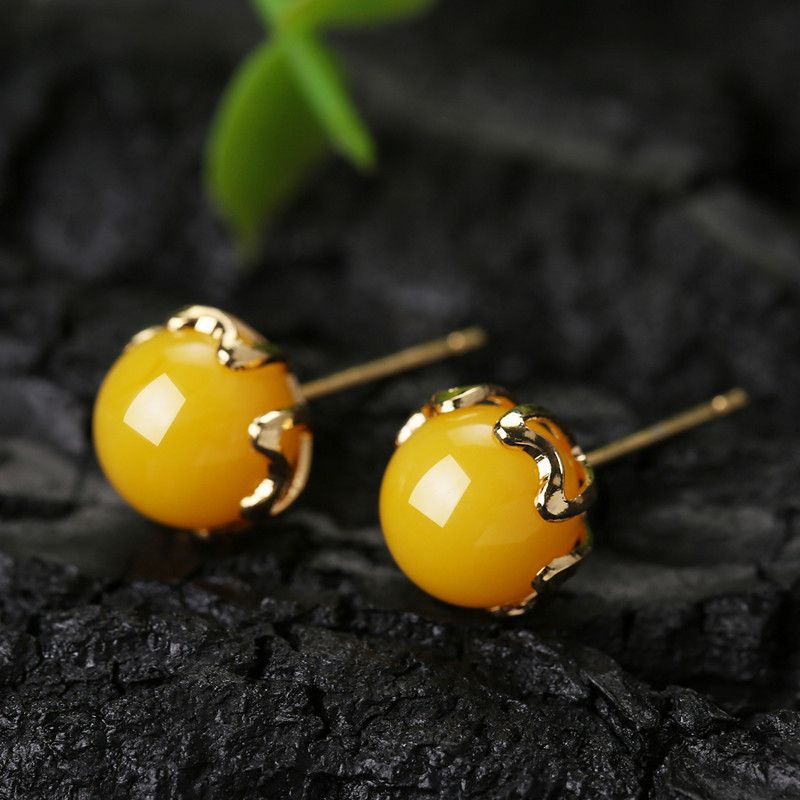 天然蜜蝋スターリングシルバー金メッキ安全バックルエナメルイヤリング女性用中国風ゴールド象嵌翡翠イヤリングギフト