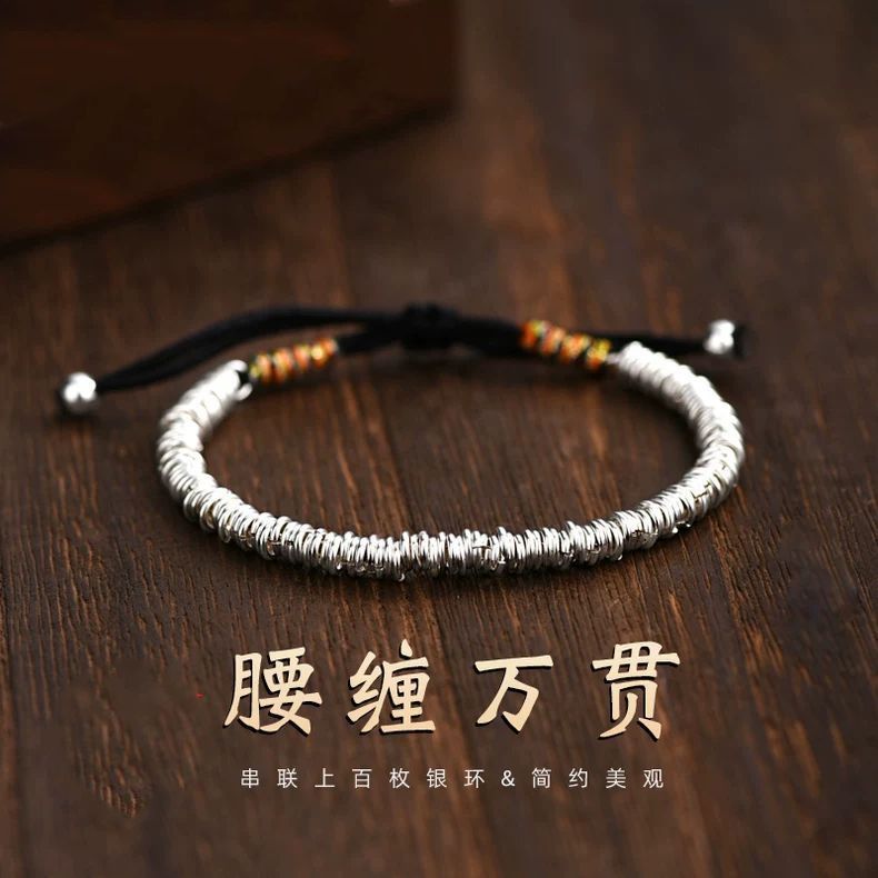 Juzi Shen Duo 9999 スターリングシルバーメッキブレスレット女性用、細い小さな篆文字、中国風、若いスタイル、ソリッドオープンブレスレット