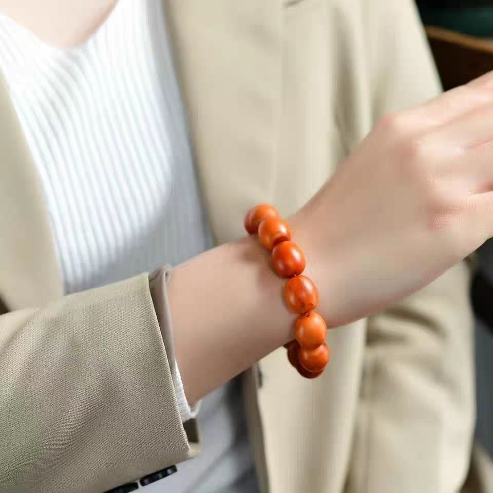 新しい琥珀蜜蝋オールドワックスファッショントレンドハイエンド雰囲気カップルスタイル仏頭ブレスレット仕様約23*21