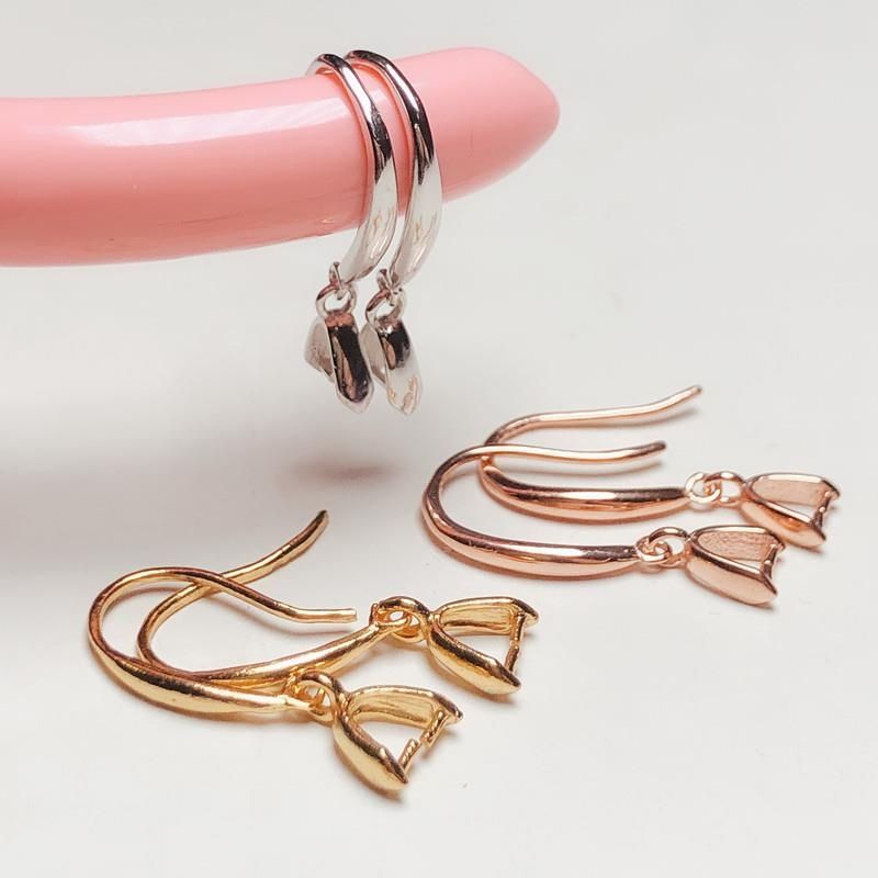 イヤーフッククリップバックル 925 スターリングシルバーゴールドメッキイヤリング空のホルダー象嵌翡翠蜜蝋イヤリングホルダーイヤリングホルダーシルバーホルダー