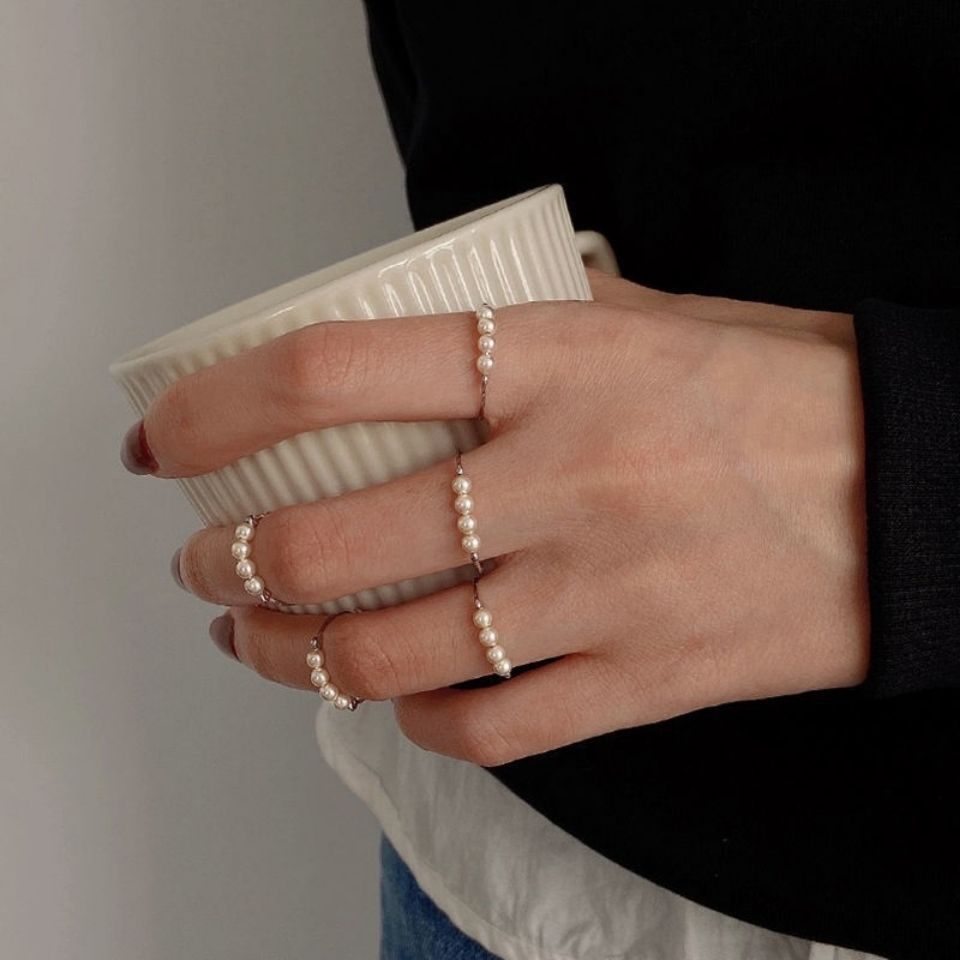 新しいニッチデザインの女性用スターリングシルバーパールリング、色あせしないコールドスタイルのハイエンドオープンエッジ人差し指リング