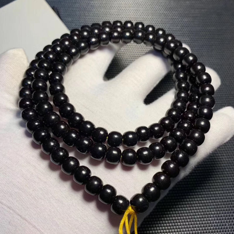 インドネシア産ブラックゴールドオールドマテリアルココナッツビーズ108個オリジナルカラー高光沢ラウンドビーズオールドバケットビーズアップルラウンドメンズ&レディースネックレス