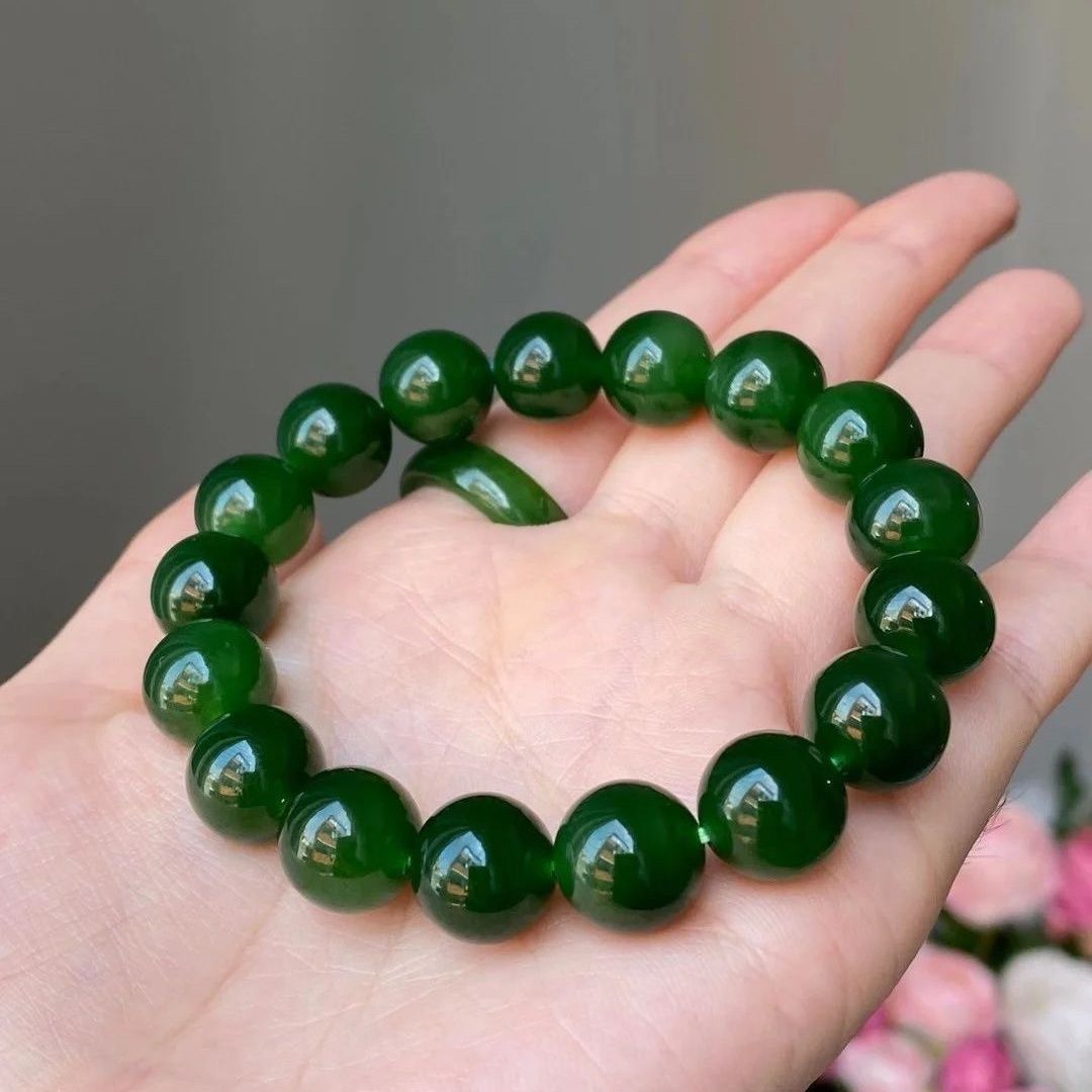 交換後、新疆碧玉ブレスレットと田玉手串氷種翡翠緑手串男女輸送旺夫招財