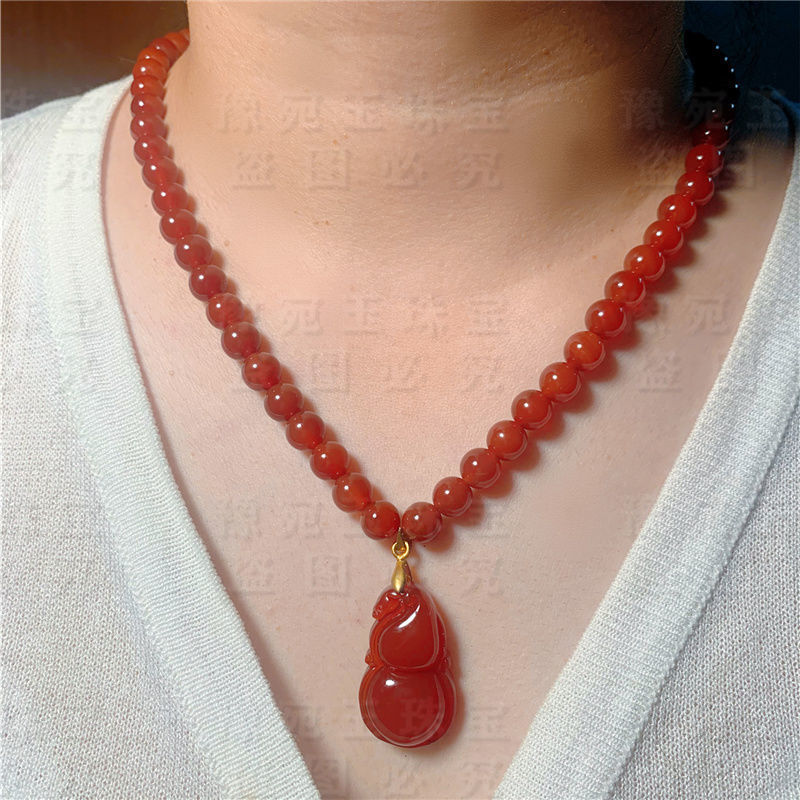 鑑定書付き 天然赤瑪瑙ビーズネックレス レディース ピクシウペンダント メンズ カップルペンダント 母の日ギフト