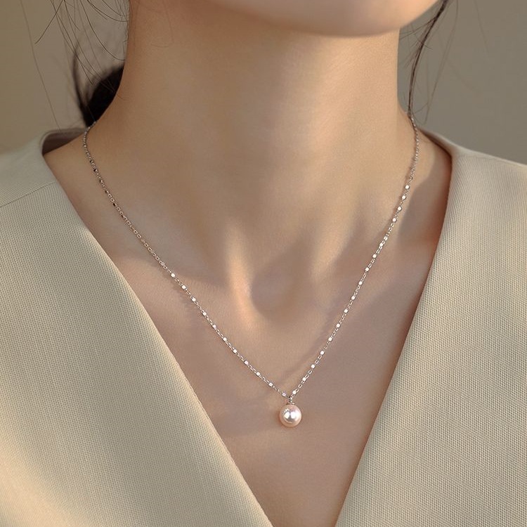 999純銀の南洋貝珠真珠のネックレスの女性のタイプは軽くて豪華で、フランス式の小さい香風の鎖の骨のチェーンを設計します。