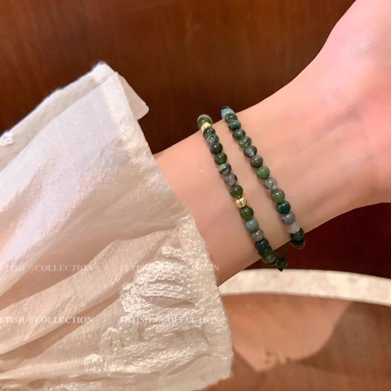エスニックスタイル〜水草瑪瑙手織り巾着ブレスレット、女性用、軽くて豪華なニッチブレスレット、シンプルで多用途なブレスレット