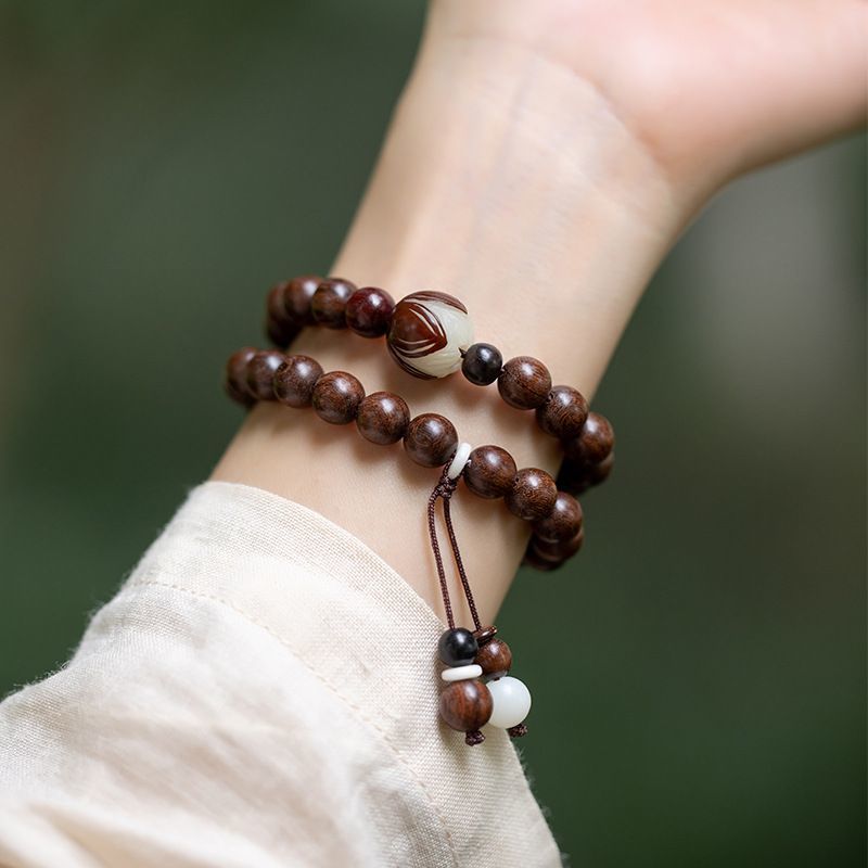 小葉紫檀108個の仏珠転運珠男女緑檀木ブレスレットと田玉手串檀香数珠カップル