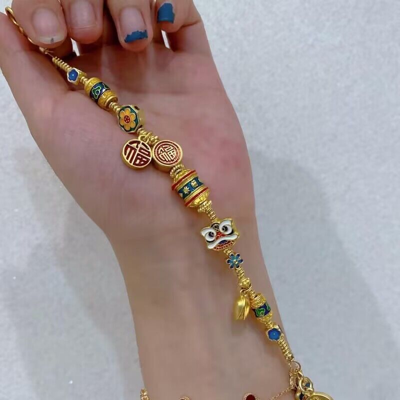 レトロエナメルバーナーブルーバレルビーズライオン覚醒多国籍トレンド個性ニッチサンドゴールドブレスレットジュエリーブレスレット女性ギフト