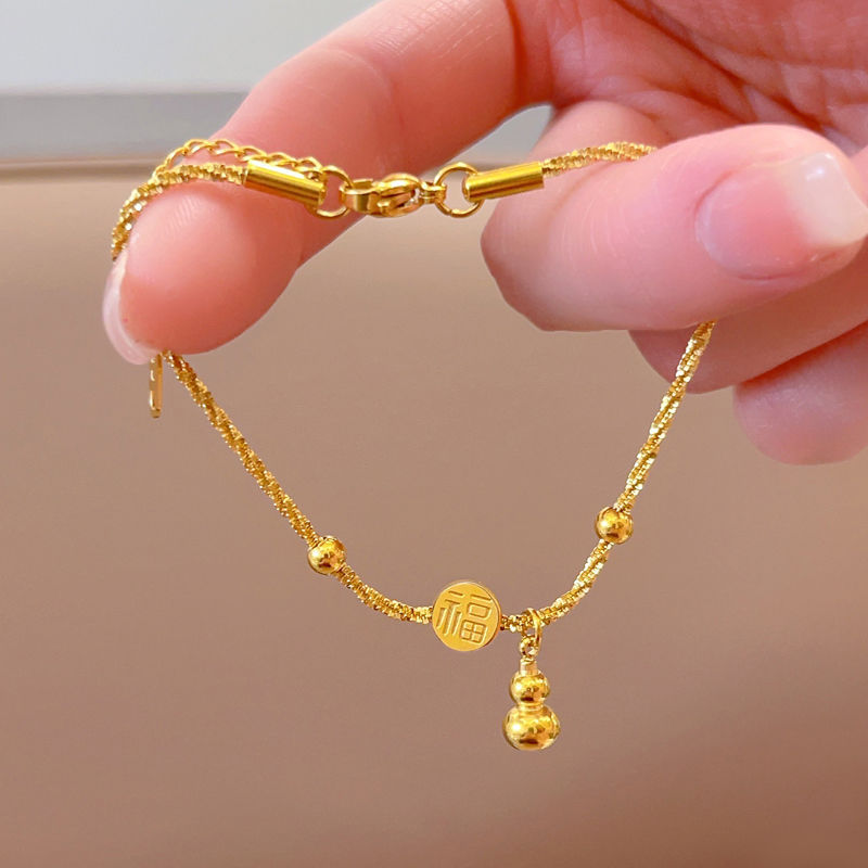 新中国式チタン鋼の福の字のヒョウタンのブレスレットの女性の福のブランドの小さい大衆の高級な復古の個性は金の手をつぶして色を落とさないで飾ります。