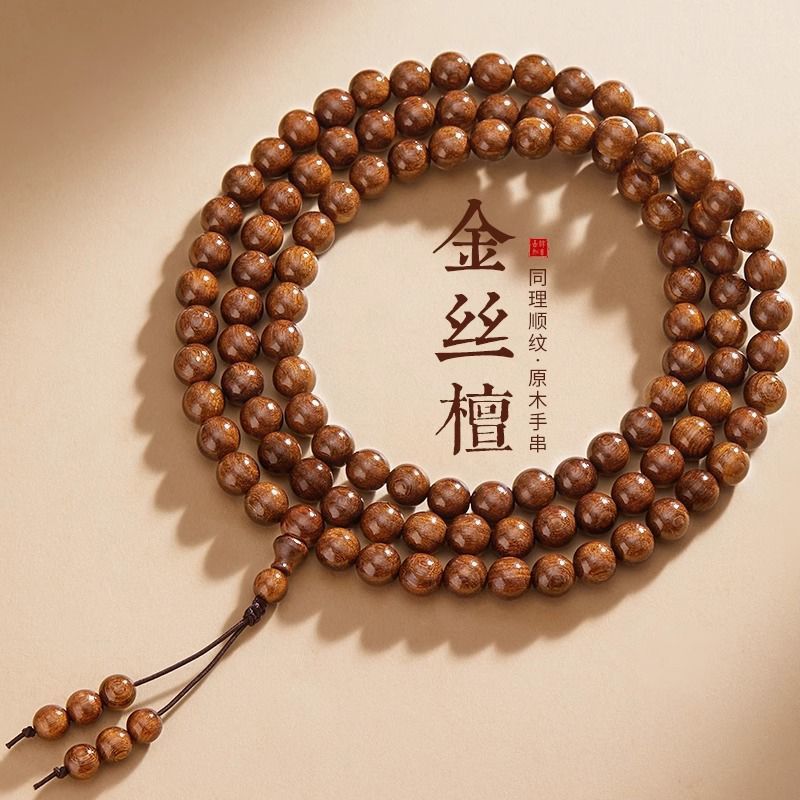 本物の金白檀ブレスレット 108 ビーズ、天然金白檀、白檀、沈香