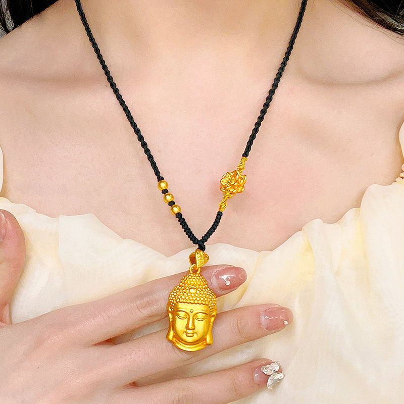 ゴールドストアと同じスタイルのサンドゴールド仏頭ペンダントソリッド永遠の安全ネックレス女性用大日如来蓮織りロープレトロ