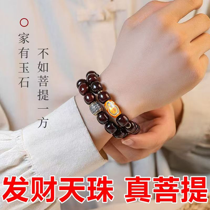 古材ブレスレット、菩提指、オリジナルブレスレット、2連ブレスレット、エスニック風ジュエリー、レトロ菩提ハンドヘルド