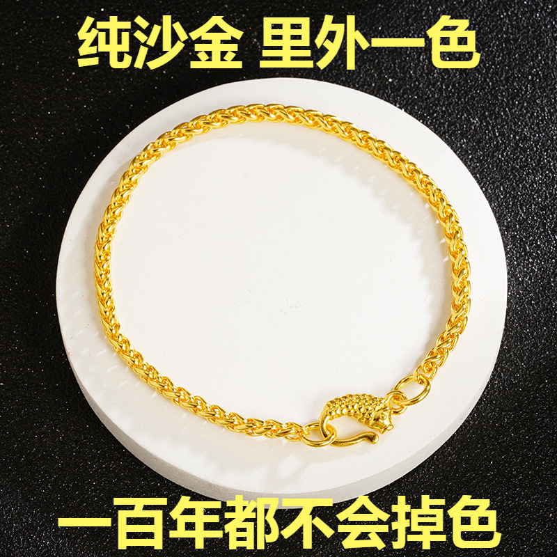 新しいベトナムサンドゴールド古代方法連動小魚と小麦の穂ブレスレット、エレガントで絶妙な女性の高級ジュエリー