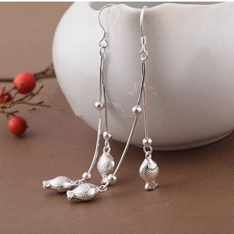 990純銀のイヤリングの小魚の長いタイプのフリンジイヤリングの女性のアクセサリーのネットの赤い金の微商は純銀のメーカーの直接販売を代行します。
