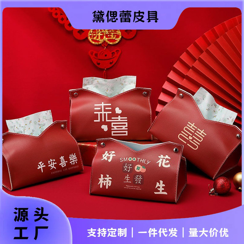 お祝いの結婚用品の引き出し箱のアイデアの赤いティッシュ箱は新婚中国式の結婚部屋の寝室の紙の引き出しを収納します。