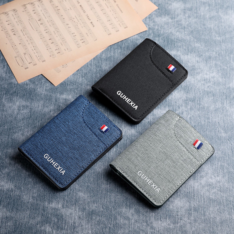 キャンバス超薄型ショートミニシンプル小財布女性男性運転免許カードバッグ一体学生男性薄い財布