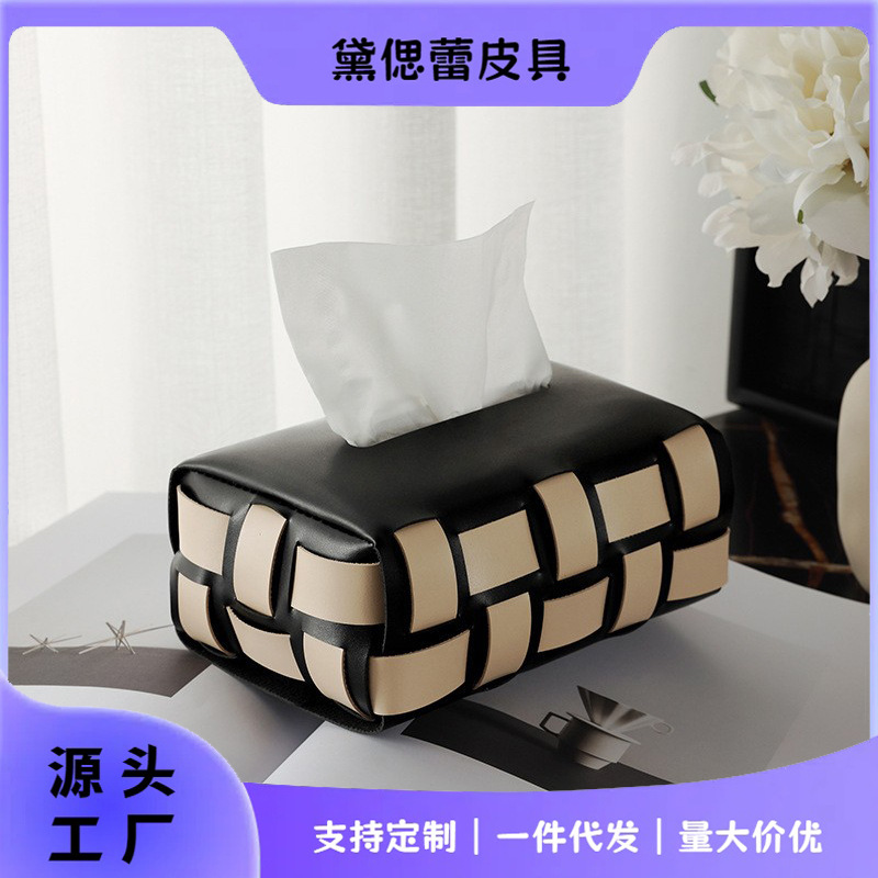 黒と白のチェス盤編み革車載ティッシュケース高級軽豪華リビングテーブルテーブル寝室収納ケース卸売り