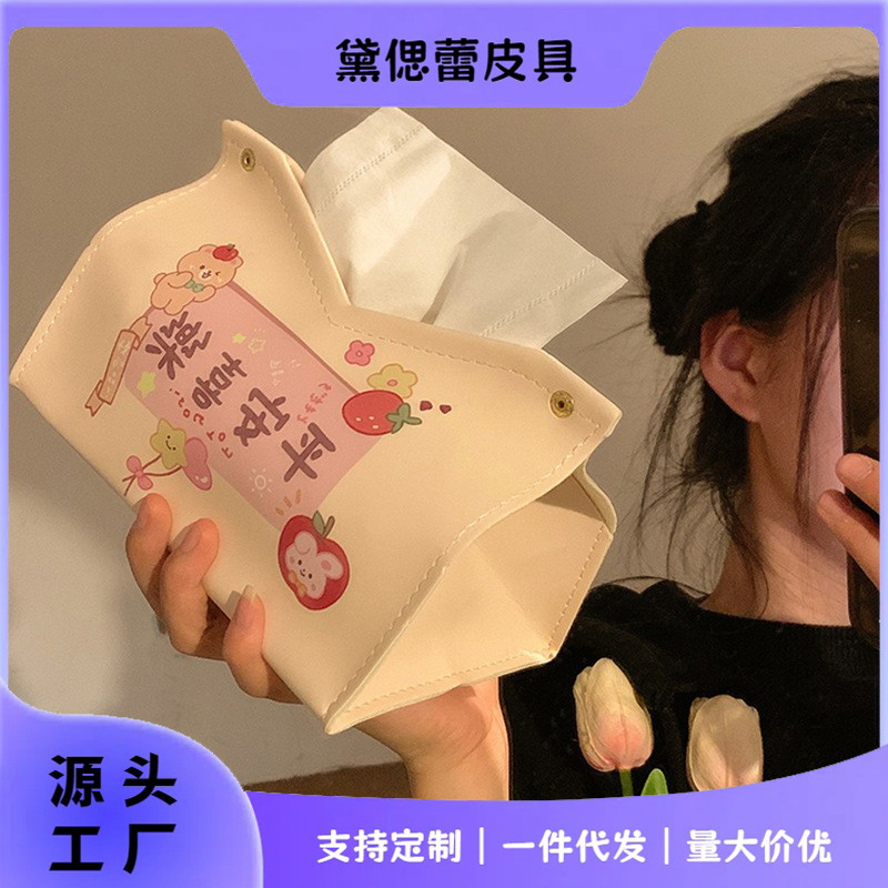 吸紙箱ins日系ティッシュカバー車載クリエイティブデスクトップ皮革学生寮オフィス収納ネット赤女
