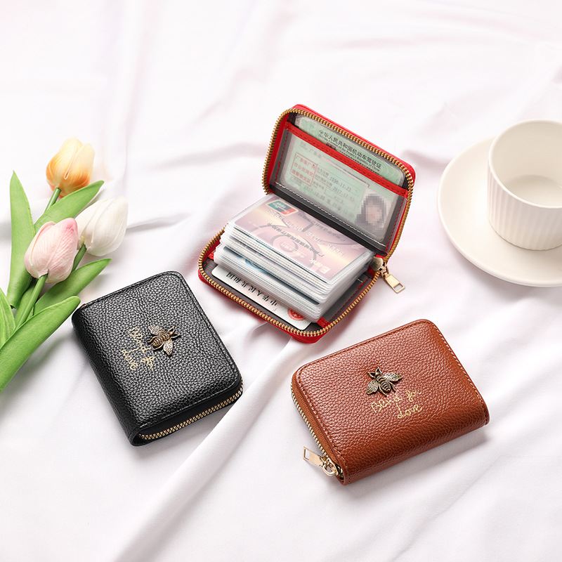 日系カードケース女性小型超薄型多卡位零財布一体2024新型石紋ミニカードケース