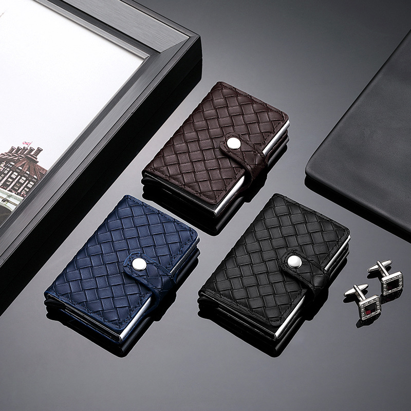 盗難防止ブラシrfid自動弾クレジットカードはアルミ合金属箱男性多卡位銀包カードカバー