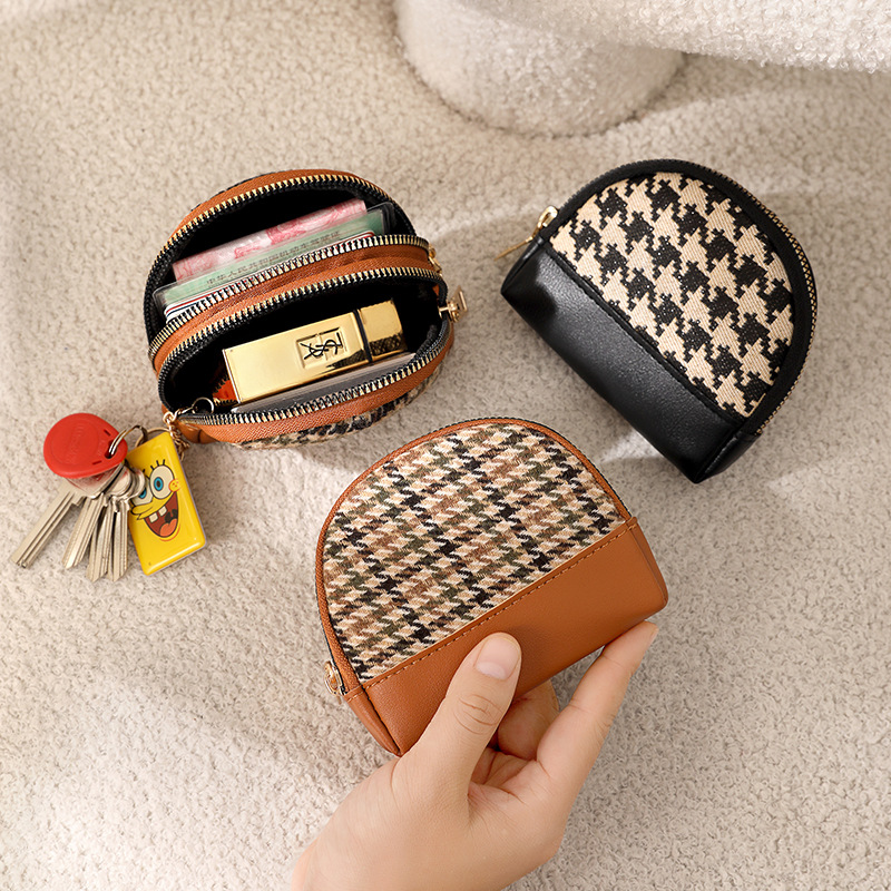 新生地小銭入れレディース欧米風ダブルファスナーショート小銭入れ鍵カード入れコインバッグオシャレ