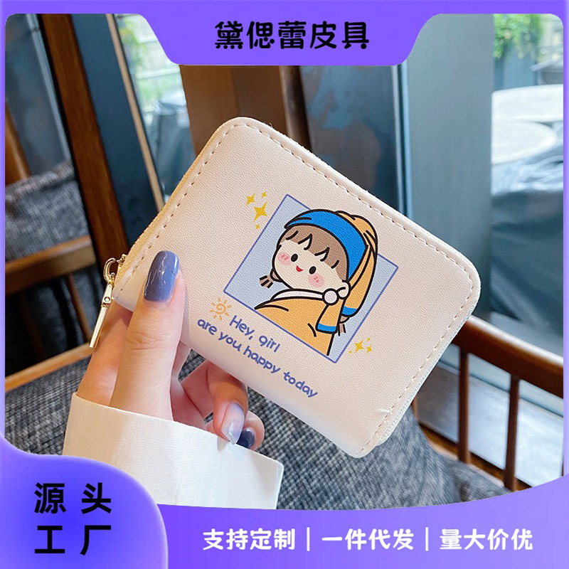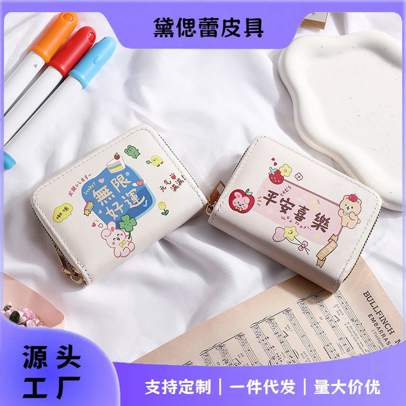 かわいいカードバッグアニメ女性ファスナー大容量マルチカード位置消磁防止小型男性カードバッグ超薄型カードカバー