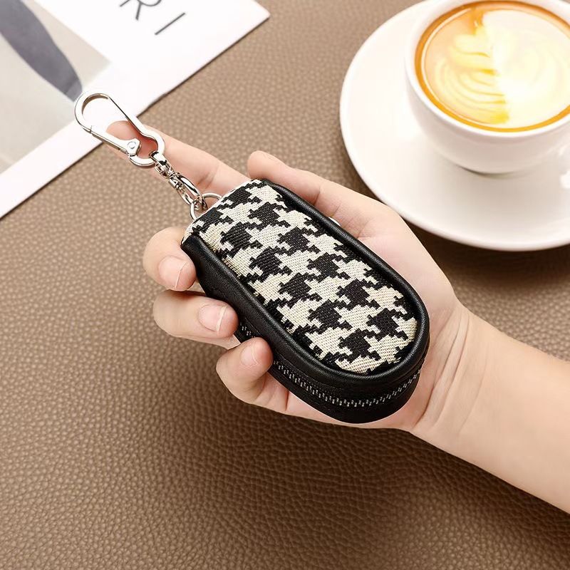キーバッグの女性の新商品の千鳥格は小さい大衆のキャンバスの収納袋のミニの小さい包みの多機能の鍵のかばんを持ちます。