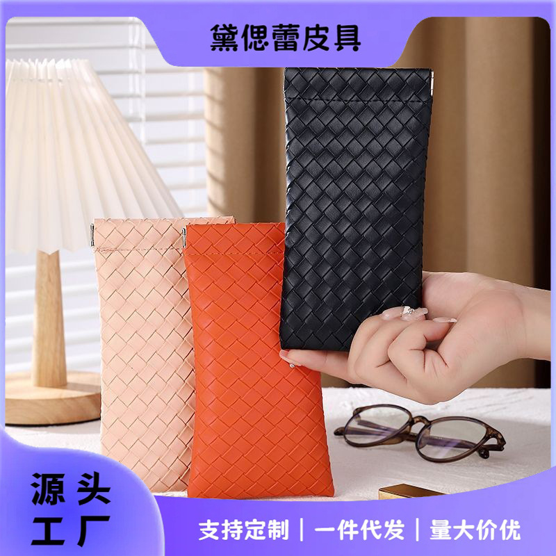 高級菱格男女近視眼箱軽薄携帯メガネ袋編み紋pvc皮革弾片太陽墨