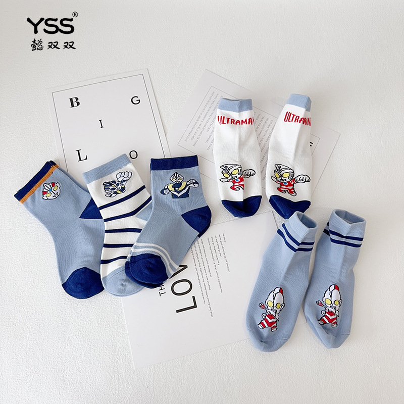 Yishuangshuang 子供靴下秋と冬の新しい漫画ウルトラマンミッドチューブソックスコーマ綿男の子かわいいベビー綿の靴下