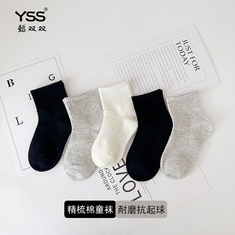 懿両足子供用靴下秋冬新作純色中筒靴下精練綿白黒学生靴下大きい子供用靴下スポーツソックス