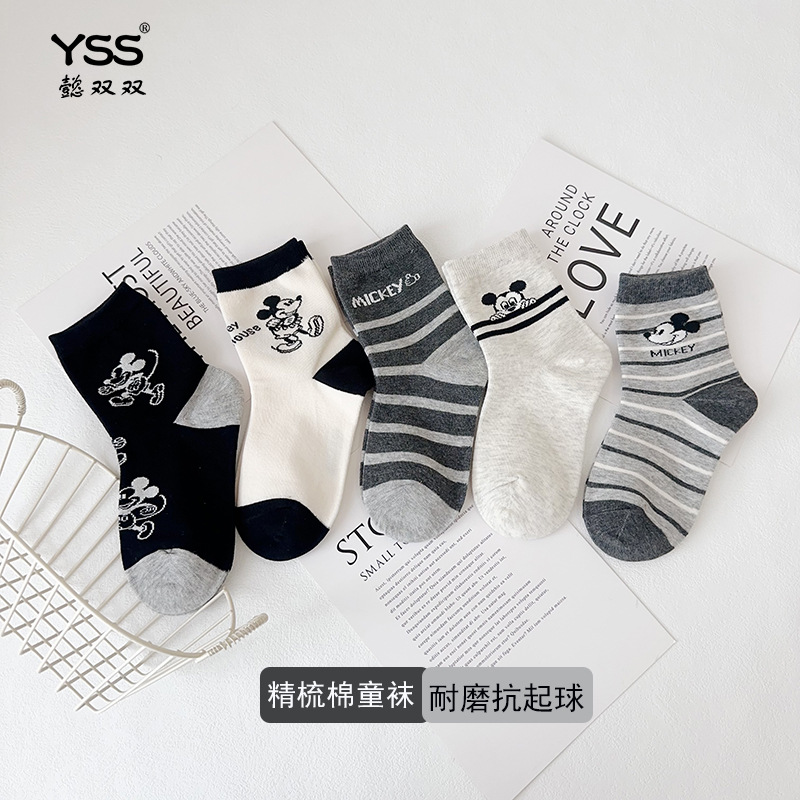 Yishuangshuang 子供靴下秋と冬の新しい漫画ミッキーマウスミッドチューブソックスコーマ綿韓国語版ミッキートレンディソックスボンレス