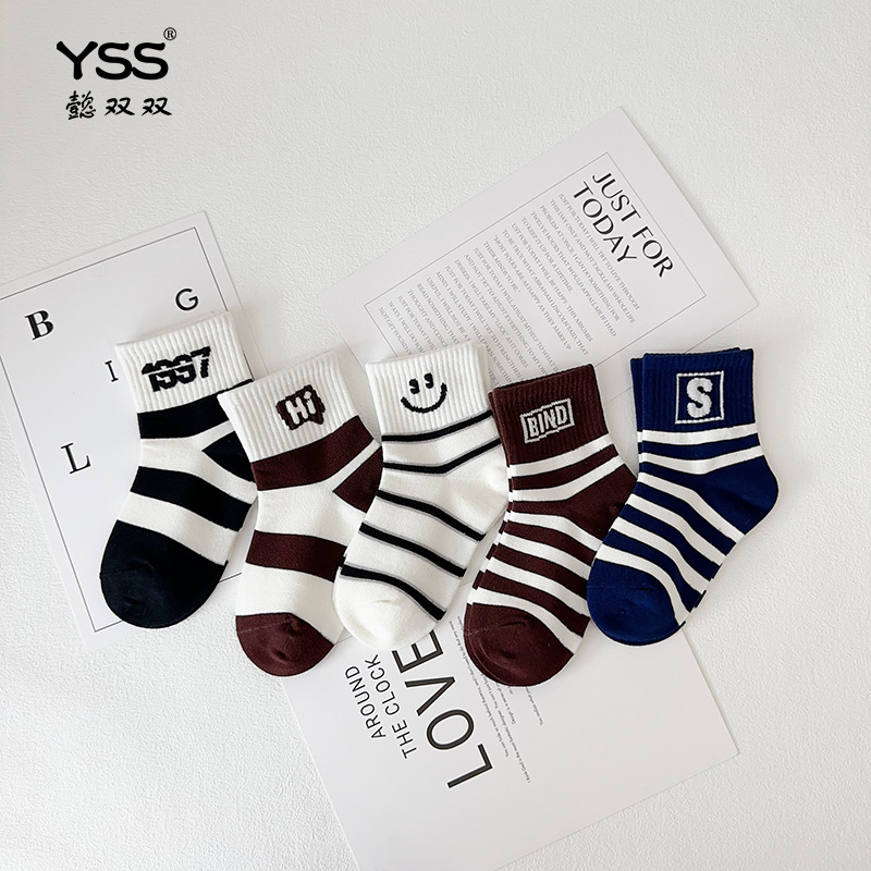 Yishuangshuang 子供靴下秋と冬の新しいトレンディなブランドレターミッドチューブソックスコーマ綿黒学生靴下スポーツ綿靴下