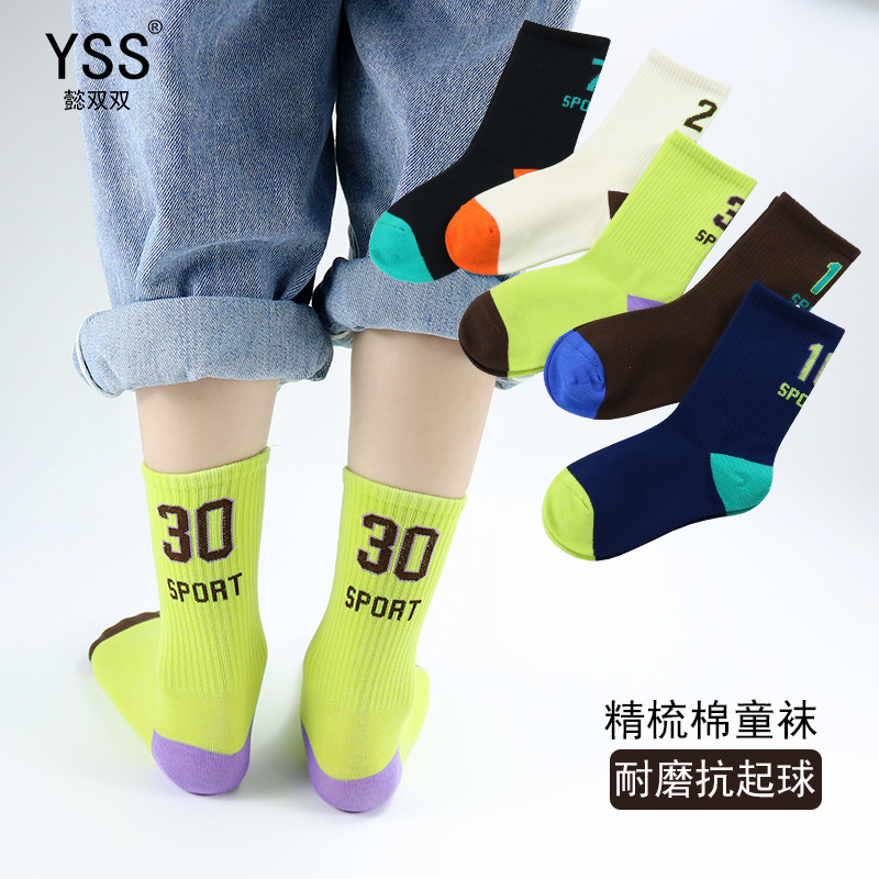 懿の子供用靴下秋冬の新型のかかとの数字の高筒の靴下の精櫛の綿のファッションのブランドの男の子の長い筒のスポーツの靴下