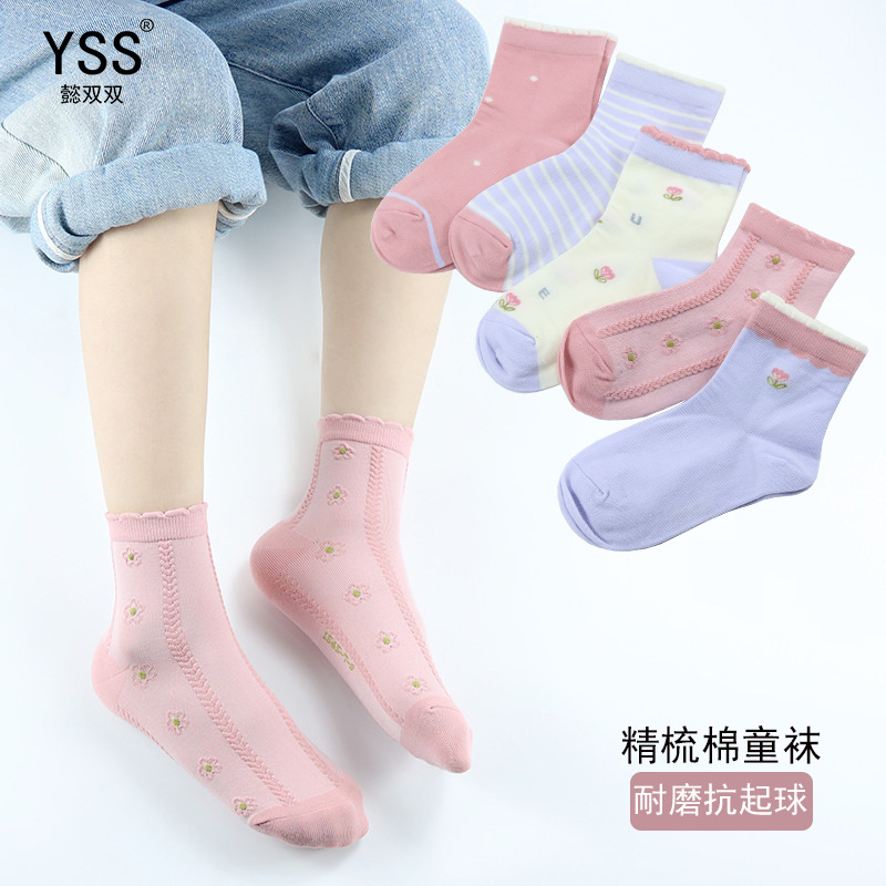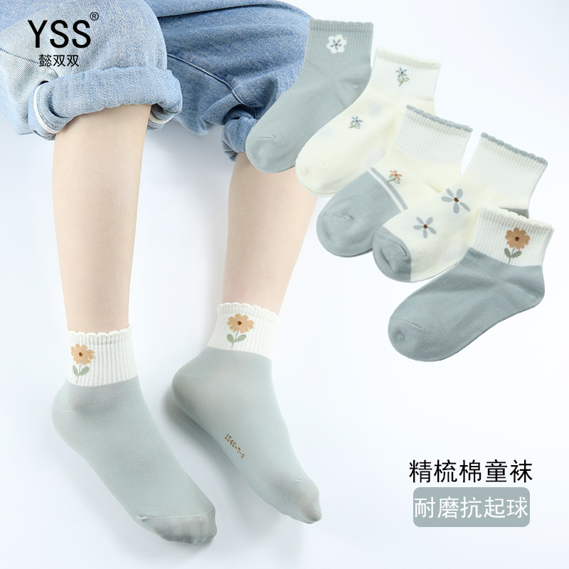 懿の両方の子供の靴下春夏の新型韓国風の小さい花のソックスの精練綿の女の子のファッションの靴下の学生の骨のない綿の靴下