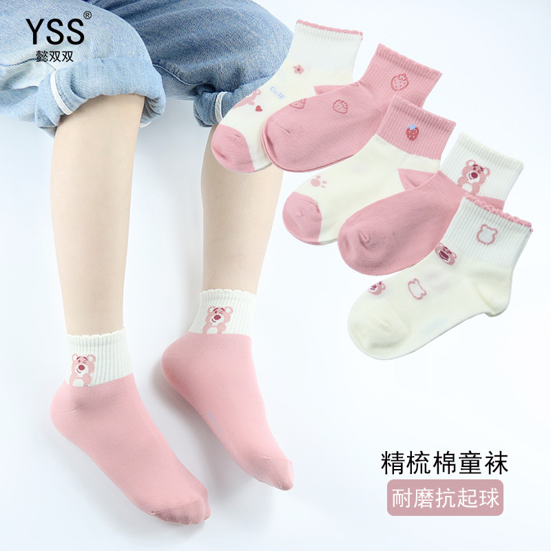 懿の両方の子供の靴下春夏の新型アニメのイチゴの熊のソックスの精練綿の女の子の韓国版のファッションの靴下は骨の靴下がありません。
