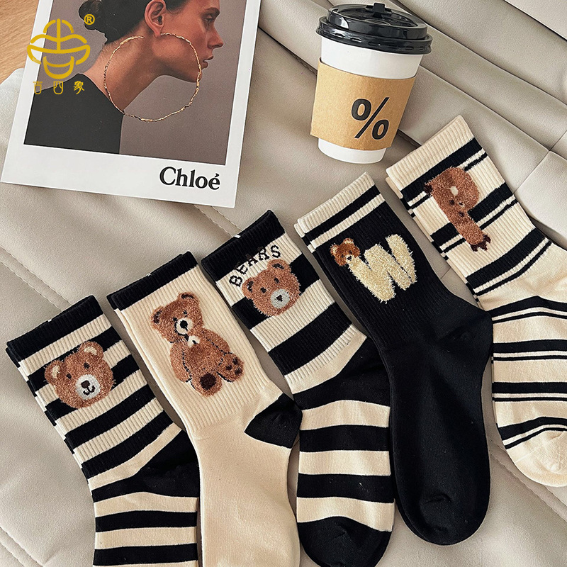 吉四象靴下女性秋冬新作韓国版熊中筒靴下精練綿潮牌学生スポーツ靴下