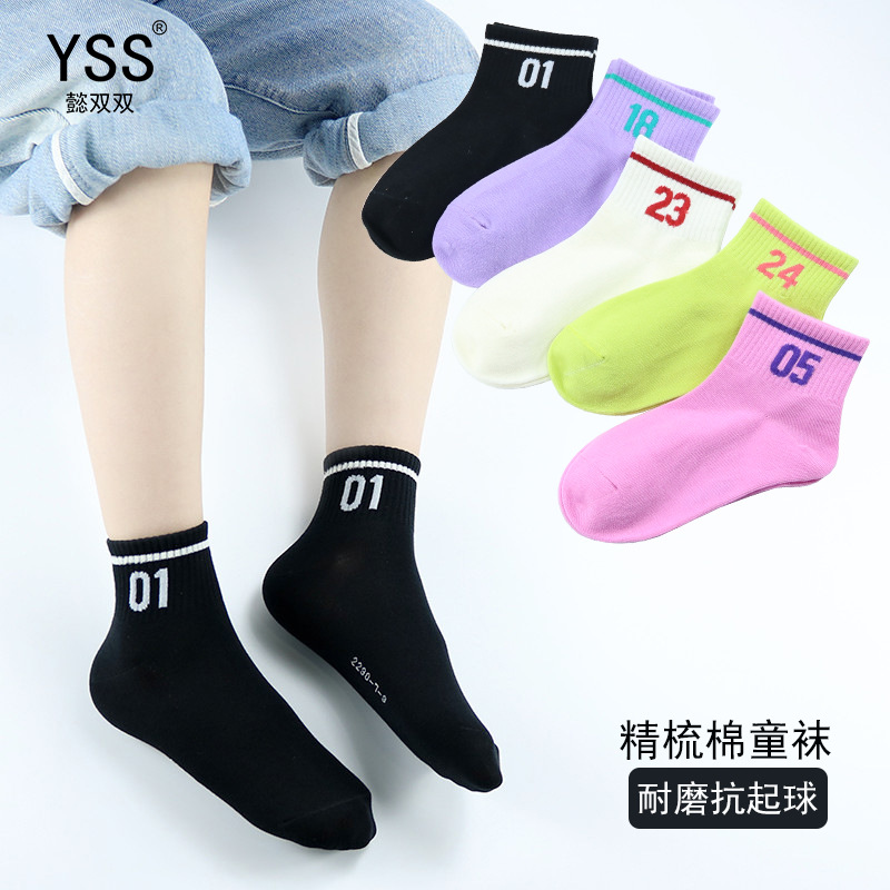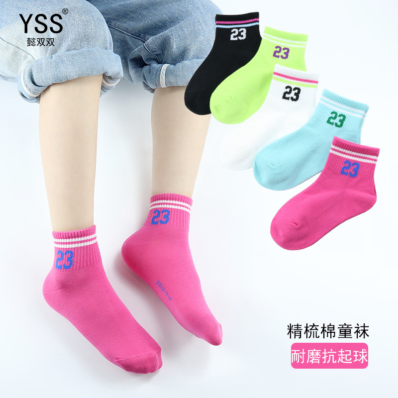 懿の両方の子供の靴下春夏の新型韓国版の数字23ソックスの精練綿のファッションのブランドのスポーツの靴下の骨がない子供の靴下