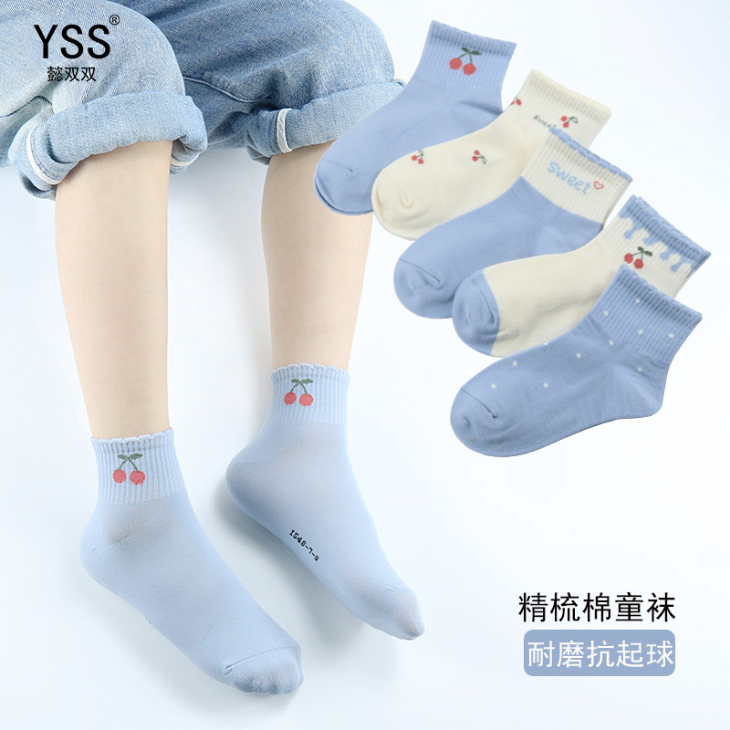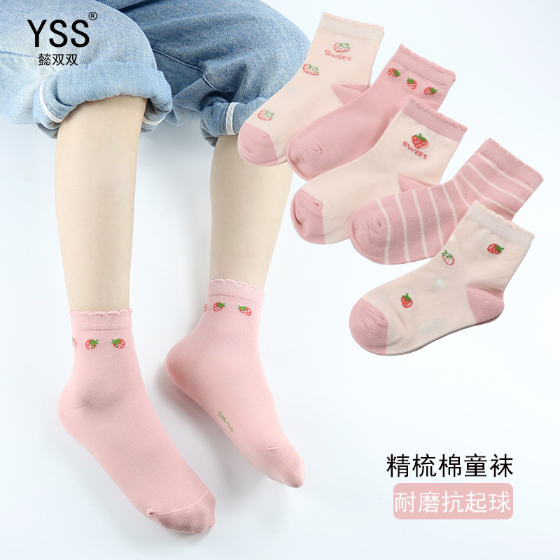 懿の両方の子供の靴下春夏の新型アニメのさくらんぼのソックスの精練綿の女の子の学生の靴下の子供の綿の靴下