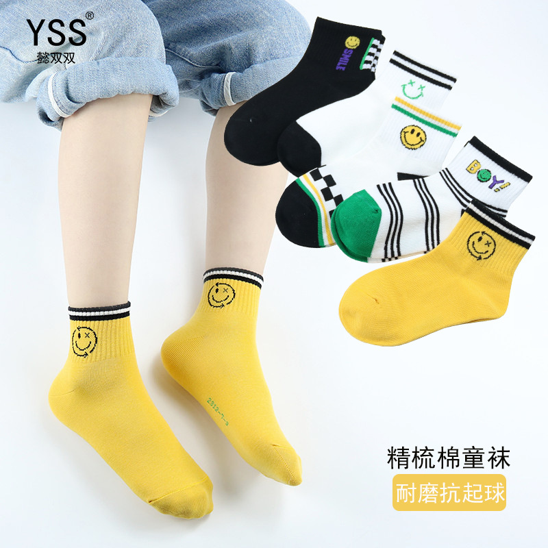 懿の両方の子供の靴下春夏の新型アニメの笑顔のソックスの精練綿の韓国版のファッションのブランドのスポーツの靴下は骨の靴下がありません。