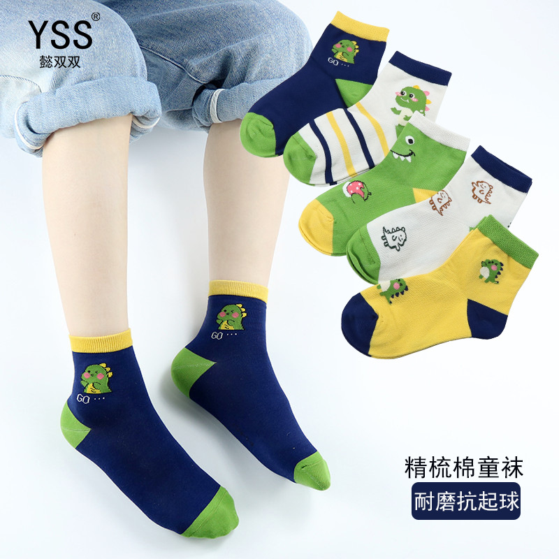 懿の両方の子供の靴下春夏の新型アニメの恐竜の靴下の精練綿の男の子の骨なしの靴下の大きい子供の学生の靴下