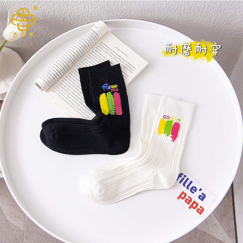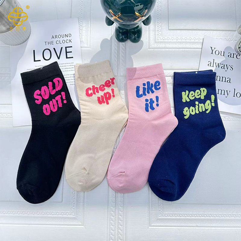 吉四象の靴下の女性の秋冬の新型のドーパミンの色の落書きは墨のアルファベットの中の筒の靴下をかけます。
