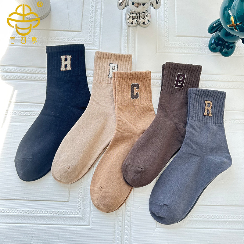 吉四象の靴下の女性の秋冬の新型の韓国版のアルファベットの中筒の靴下の精櫛の綿のファッションのブランドのスポーツの靴下の大きい子供の学生の靴下