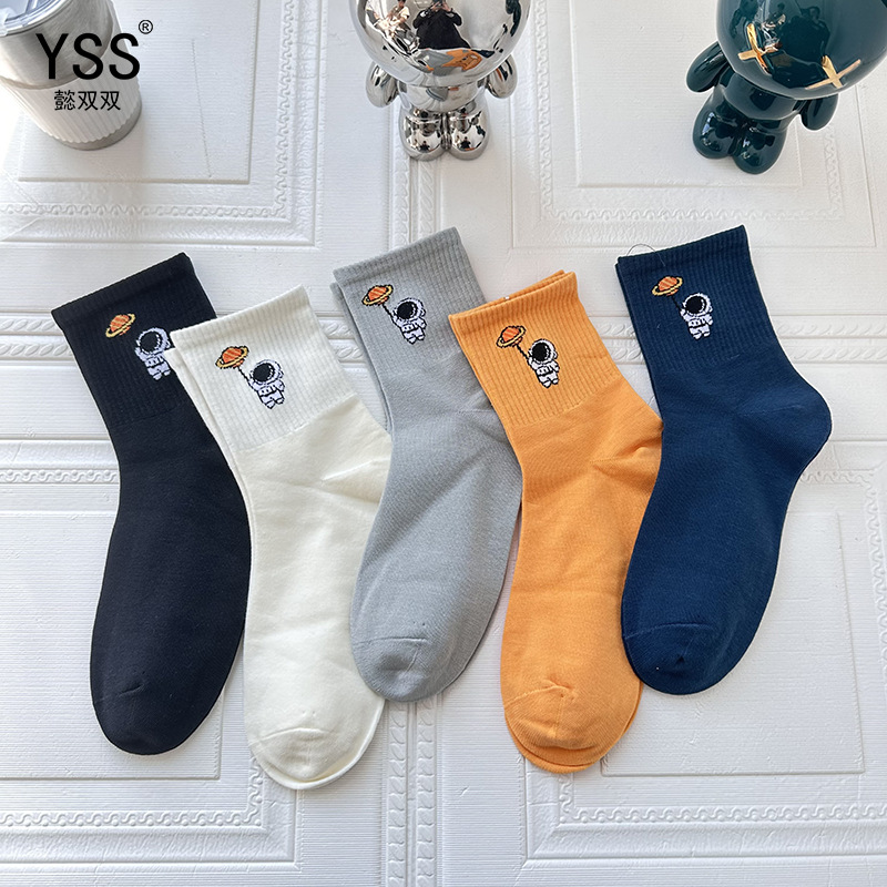 懿の両方の子供の靴下秋冬の新型アニメ宇宙飛行士の中筒の靴下の精練綿の少年の靴下の骨がない学生の靴下